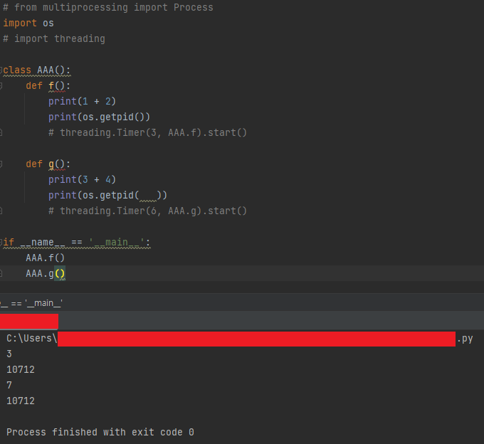 아래에 함수 2줄(AAA.f(), AAA.g())이 단일 프로세스를 활용하는 코드이다.