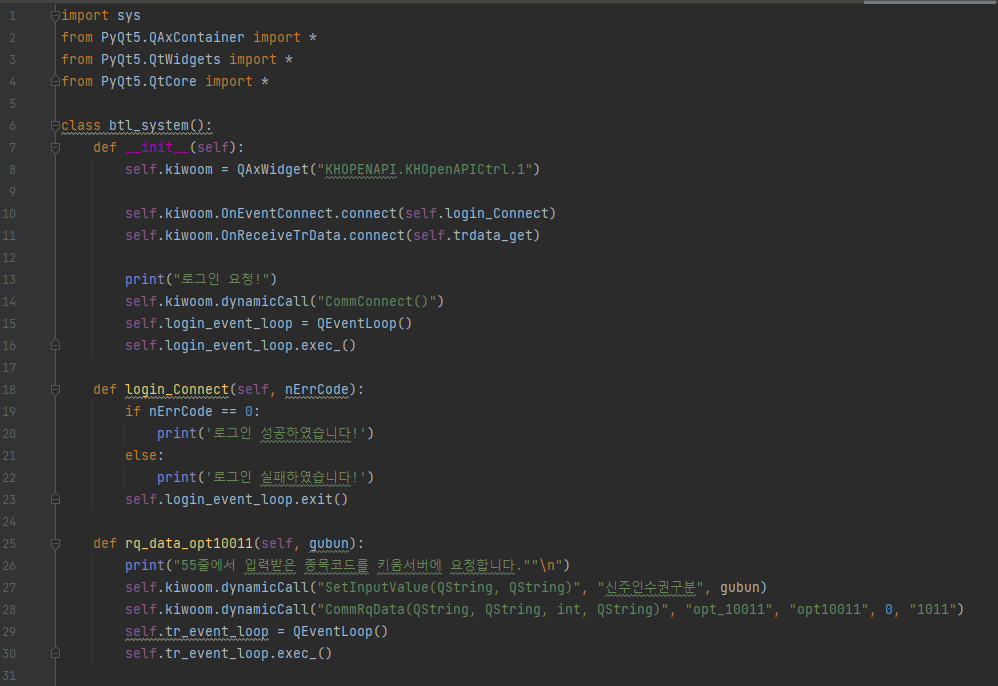 self.kiwoom.OnEventConnect.connect(self.login_Connect)