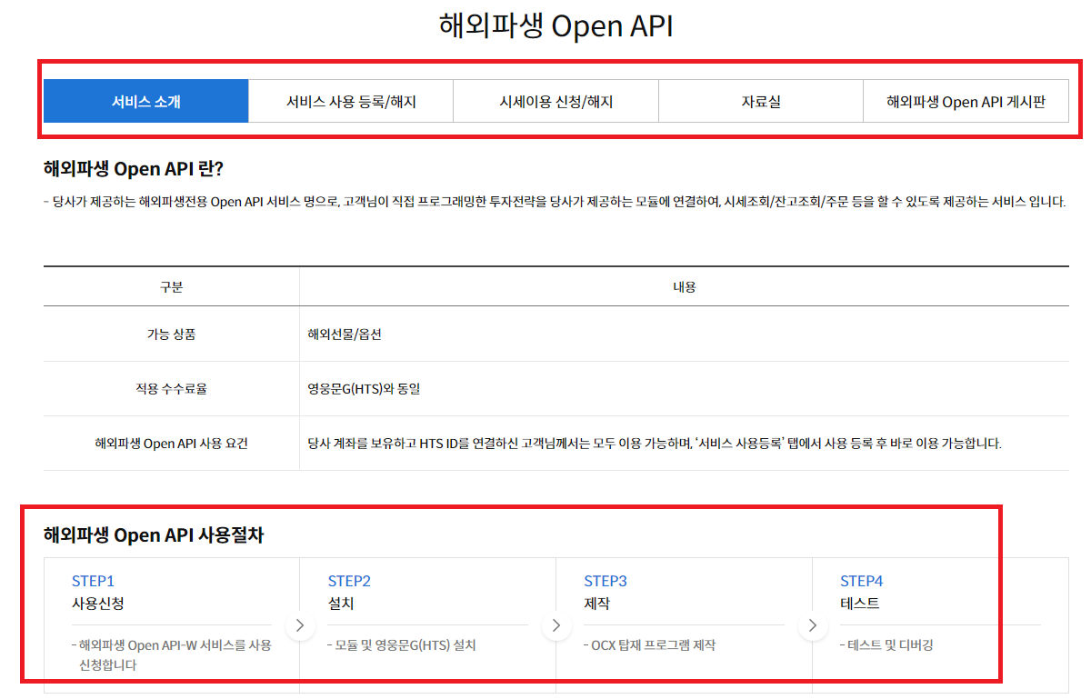 - (경로) 키움 홈페이지 > 전체메뉴 > 고객서비스 > 다운로드 > OpenAPI > 해외파생 OpenAPI