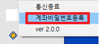 모니터의 우하단에서 "계좌비밀번호등록"를 수동으로 입력한다.