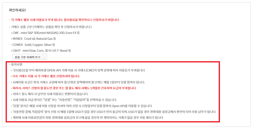 해외선물 OpenAPI-W에서 시세이용을 위해 이용료를 지급하는 방법을 알아보았다.