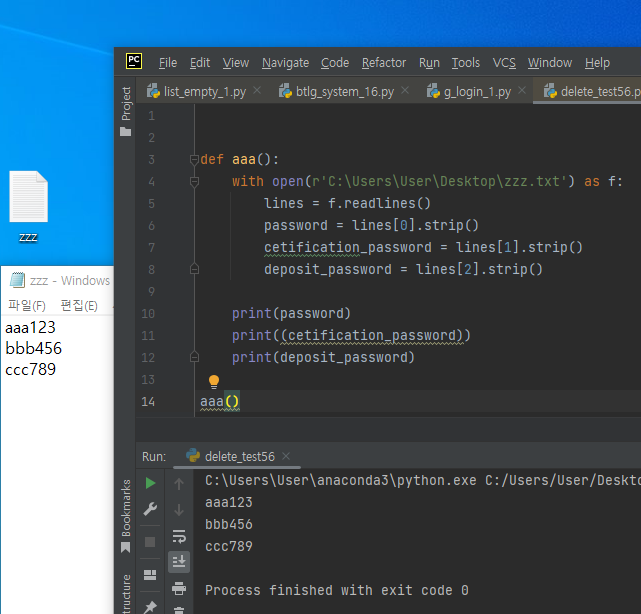 바탕화면에 메모장을 열어 이름이 "zzz"인 text 파일을 만들고 나서 실행한다.