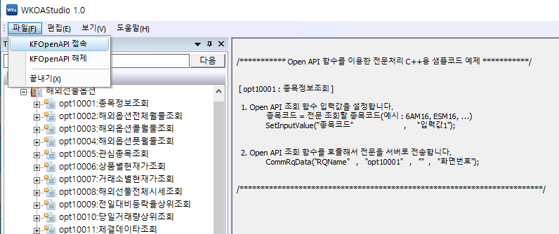 키움증권의 WKOA Studio 및 OpenAPI-W는