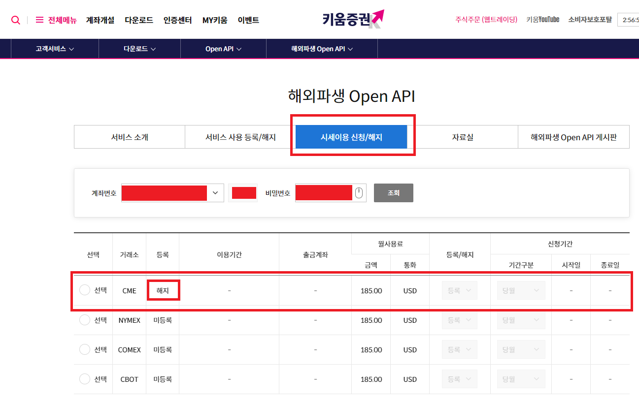 (키움증권 해외선물 OpenAPI-W) 자동매매를 위한 시세요청 이용료 결재하기