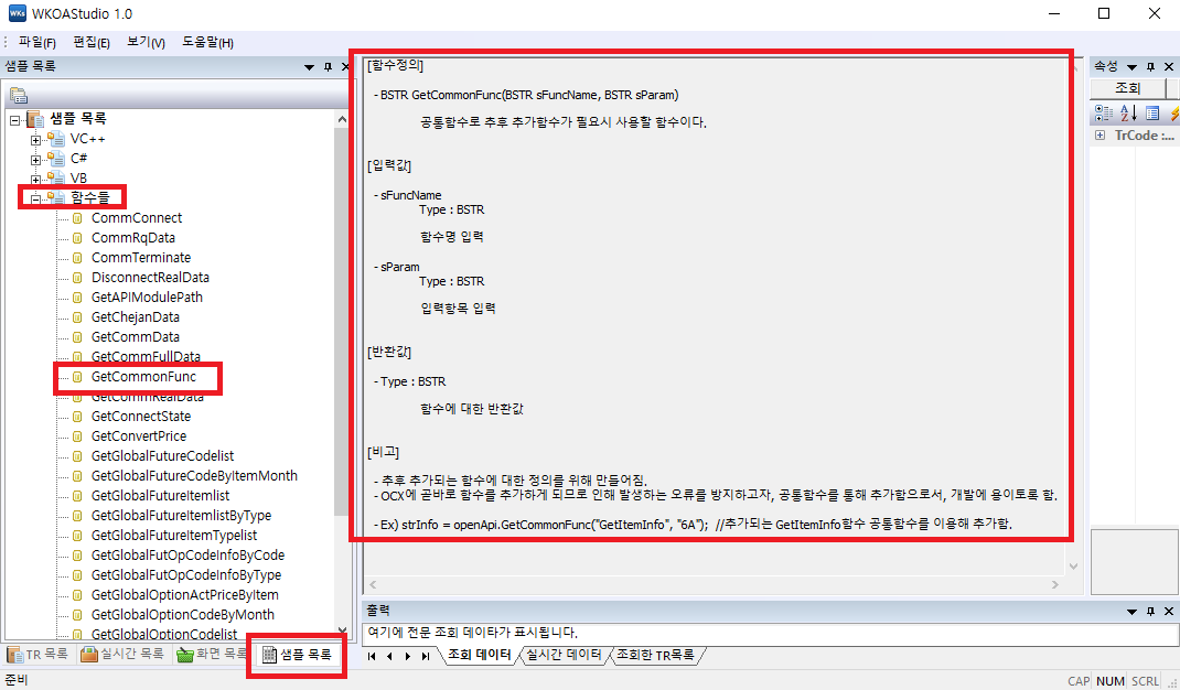 TR 요청보다는 GetCommonFunc 함수는 더 편하게 활용할 수 있다.