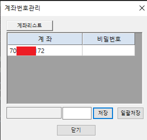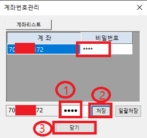 "비밀번호등록 창"에서 계좌 비밀번호는 수동으로 입력해야 한다.