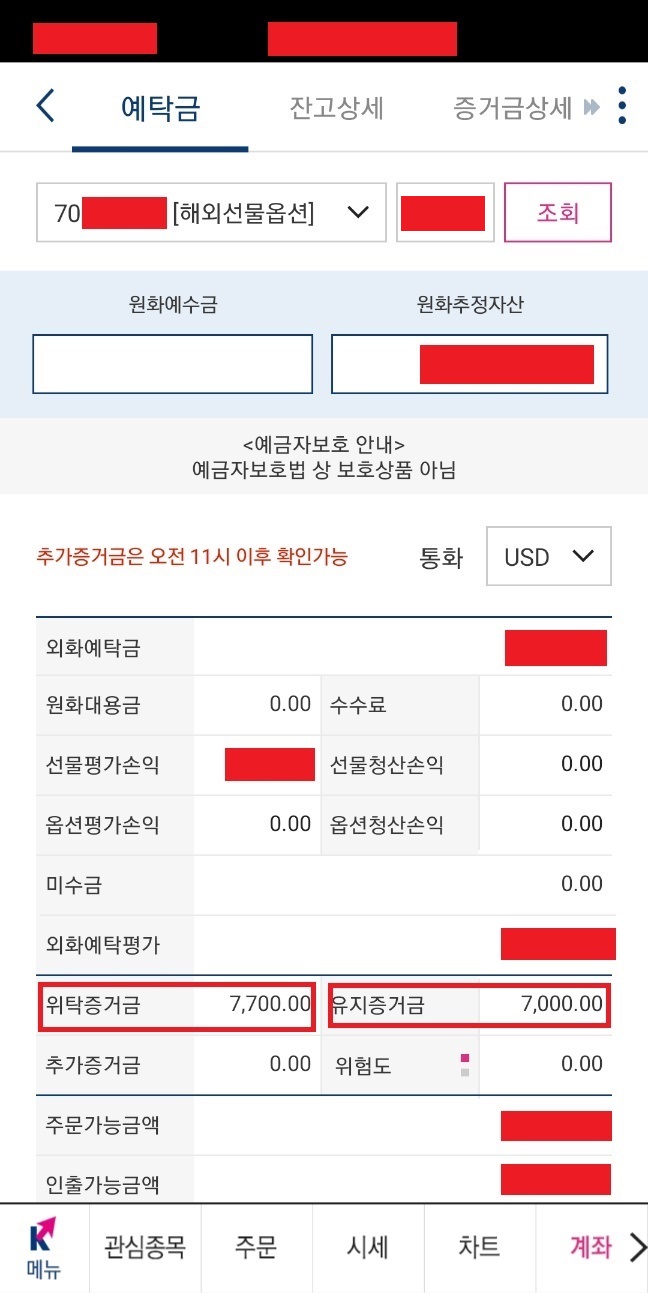 - 통화별 평가위탁총액 = 예탁금 + 미결제약정평가손익
