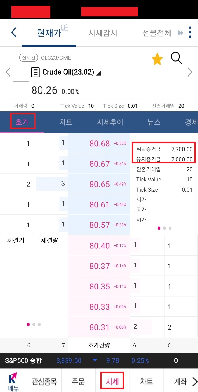 이 외에도, 크루드 오일의 잔존거래일(20일), 틱당 가치 10달러, 틱 사이즈(호가) 0.01달러를 확인할 수 있다.