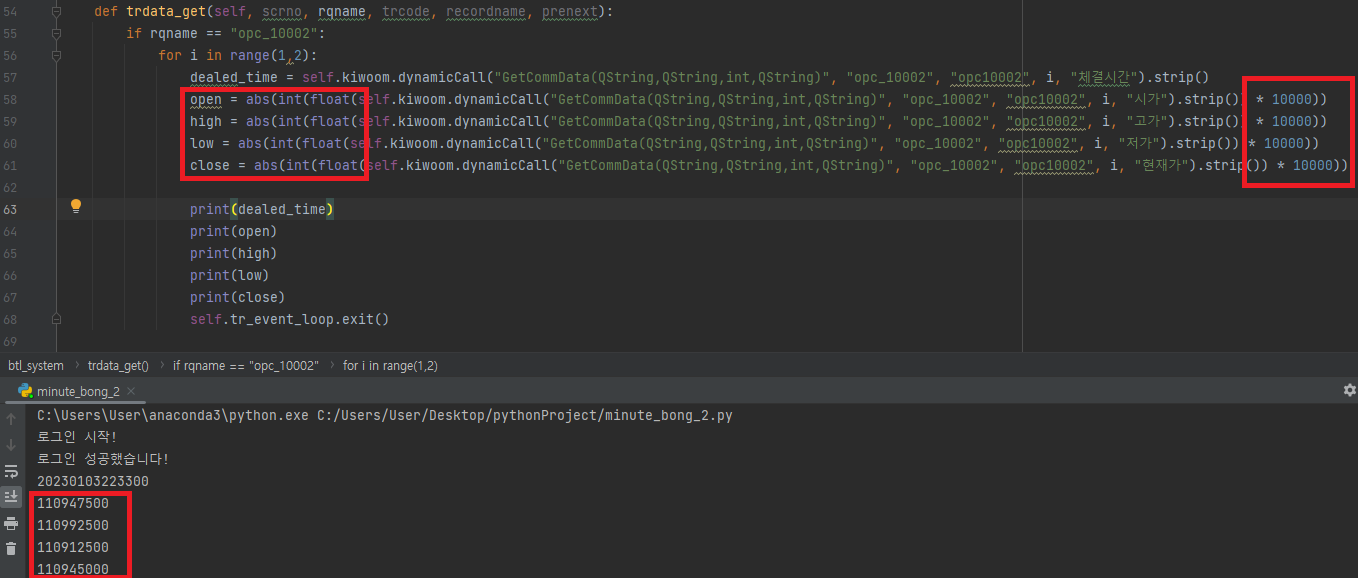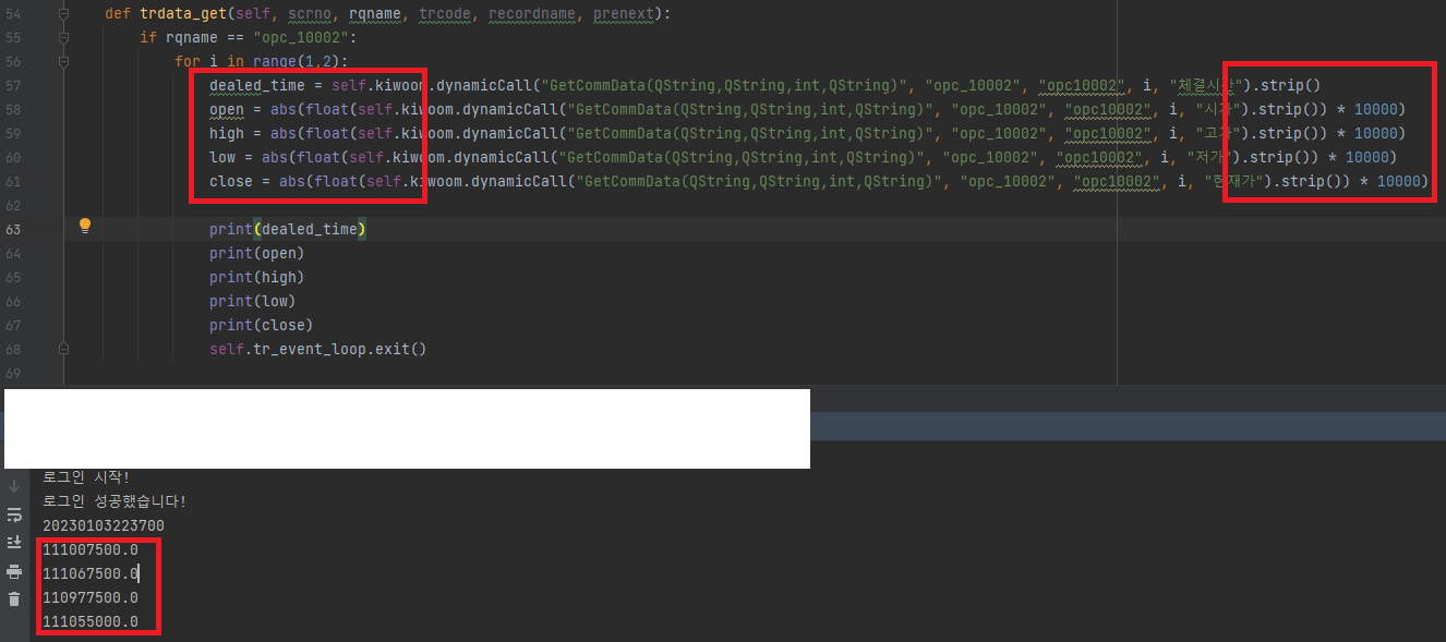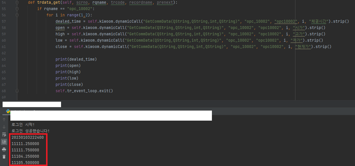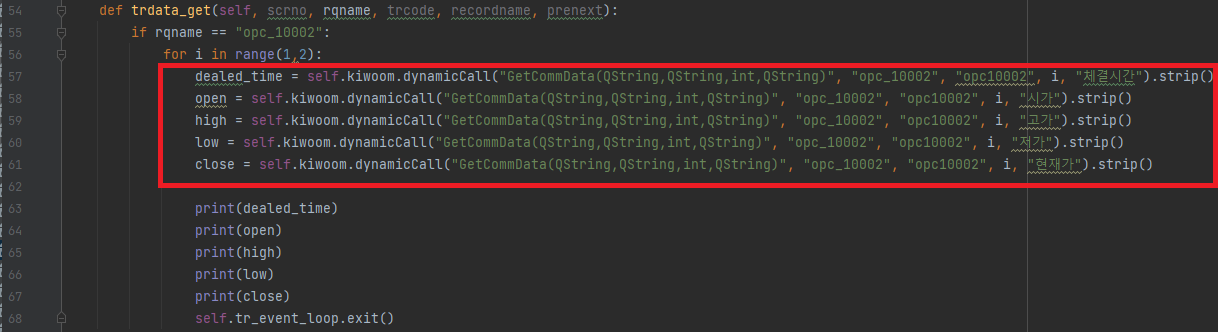 high = self.kiwoom.dynamicCall("GetCommData(QString,QString,int,QString)", "opc_10002", "opc10002", i, "고가").strip()