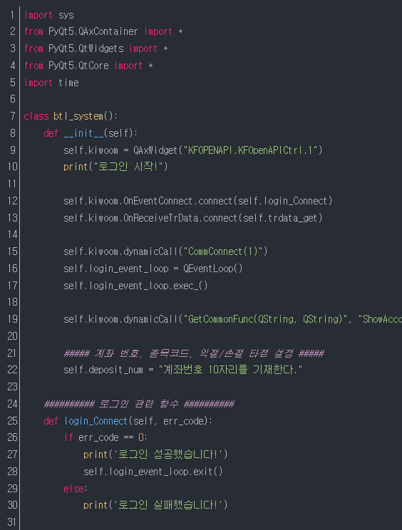 self.kiwoom.OnEventConnect.connect(self.login_Connect)