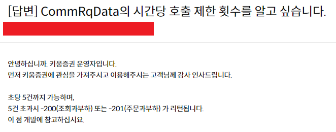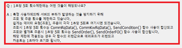 키움측에서는 위의 CommRqData 와 SendOrder 함수에 대한 제한을 말한다.
