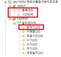 수신받는 데이터(output)는 현재가 1개를 활용한다.
