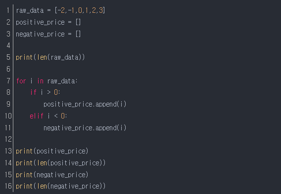 8줄~9줄 : 양수이면 2줄의 positive_price에 넣는다.