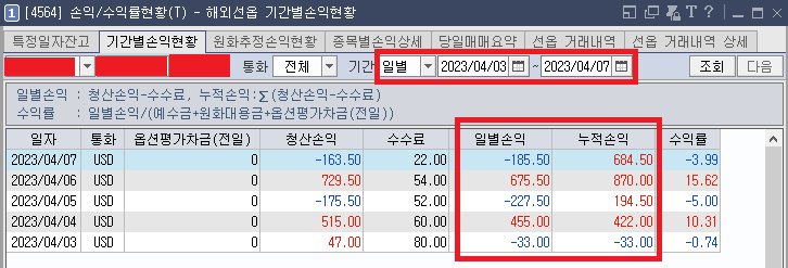 - 4월 4일(화) : 422달러 수익으로 무난하게 마무리하였다.