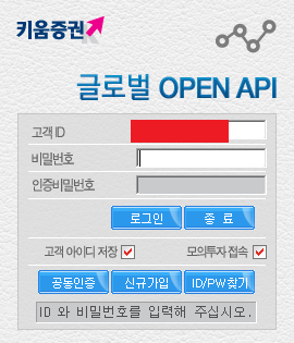 - ①아이디/비밀번호는 키움증권 홈페이지에 가입했을 때의 아이디/비밀번호를 말한다.