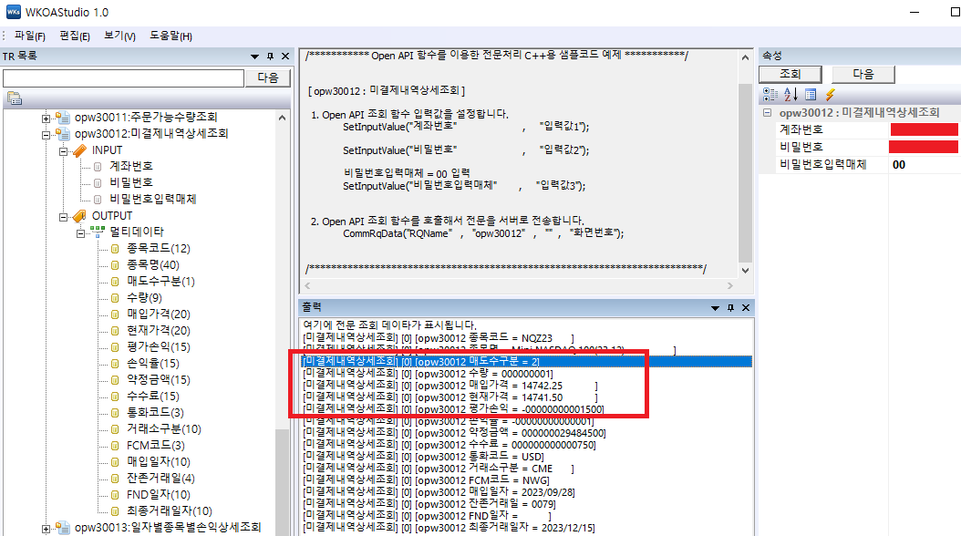 이번 글에서는 opw30012(미결제내역 상세조회)을 통해 (진입 후) 매도수구분, 평가금액, 진입가격, 현재가격 등을 알아보도록 하자.