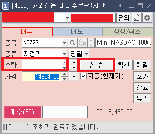 ④ 종목코드 : 미니 나스닥('23.12월)을 입력(NQZ23)