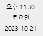 화면에 출력하는 현재시간은 2023-10-21(토), 11:30분이다.