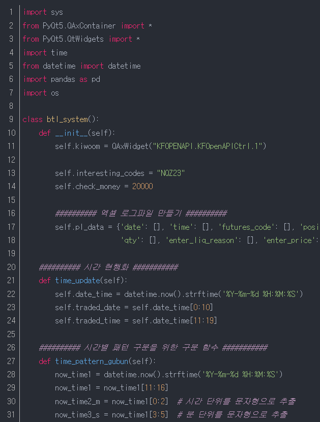 | (키움증권 해외선물 자동매매 파이썬) 17. 시간별 다른 코드 적용하기 (3) | 2023.10.24 |