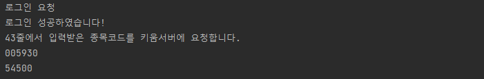 print("43줄에서 입력받은 종목코드를 키움서버에 요청합니다.")