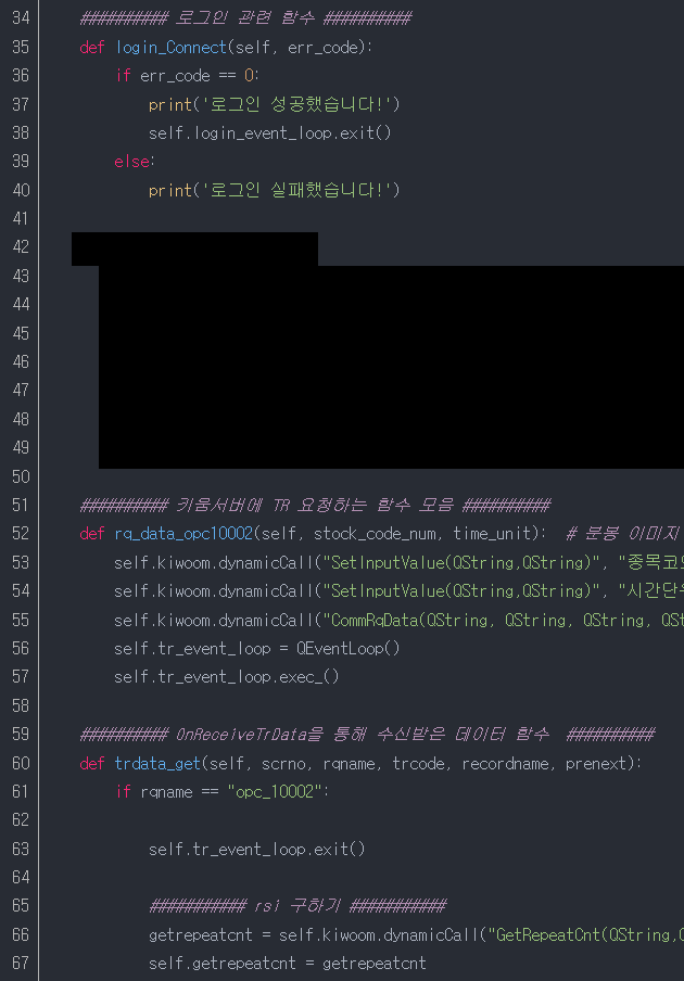 51줄~67줄 : 1분봉 데이터의 입력, 요청 및 수신 등에 관한 내용이다. 설명을 생략한다.