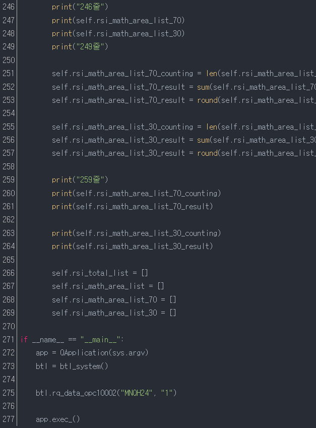 26줄~32줄 : 74줄~148줄에서 rsi를 구하기 위한 리스트를 미리 선언한다.