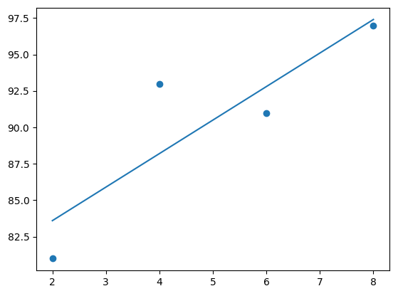 data = [[2, 81], [4, 93], [6, 91], [8, 97]] # 데이터셋 설정