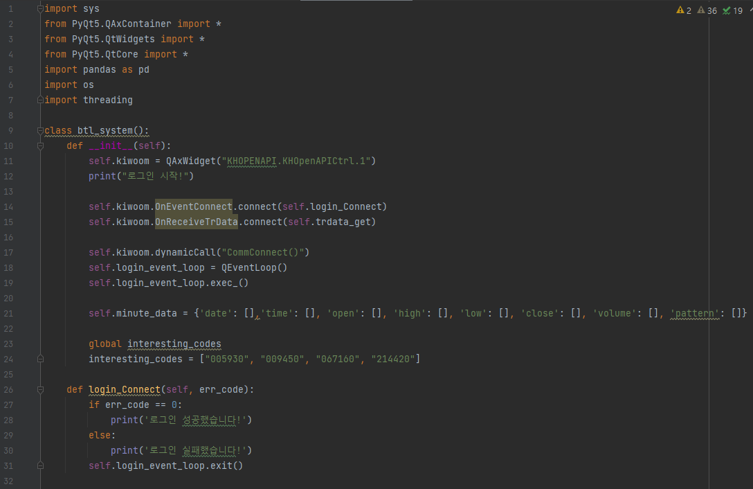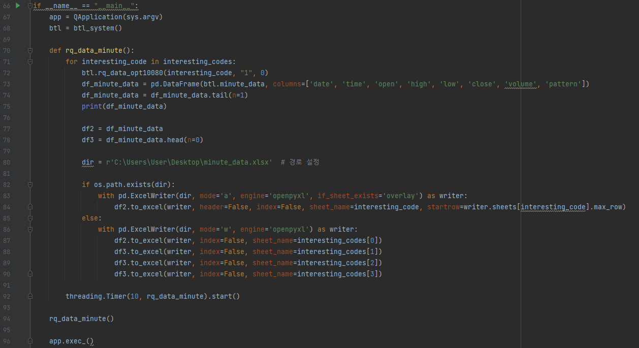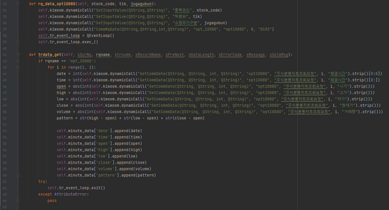 33줄 : 72줄(btl.rq_data_opt10080(interesting_code, "1", 0)을 실행하기 위한 함수를 만든다.