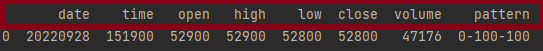 df_minute_data = pd.DataFrame(btl.minute_data, columns=['date', 'time', 'open', 'high', 'low', 'close', 'volume', 'pattern'])