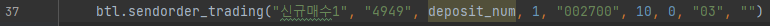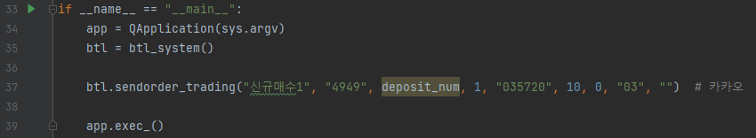 btl.sendorder_trading("신규매수1", "4949", deposit_num, 1, "035720", 10, 0, "03", "") # 카카오