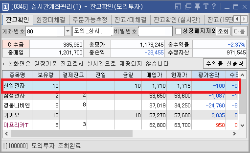 모의계좌라서 그런가?