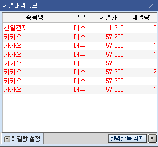 1) 카카오(035720) 10주 매수 결과