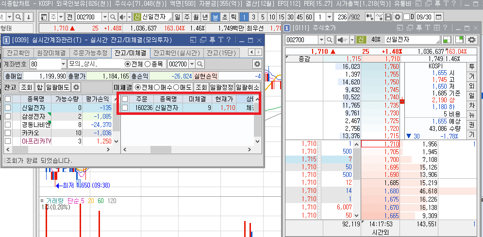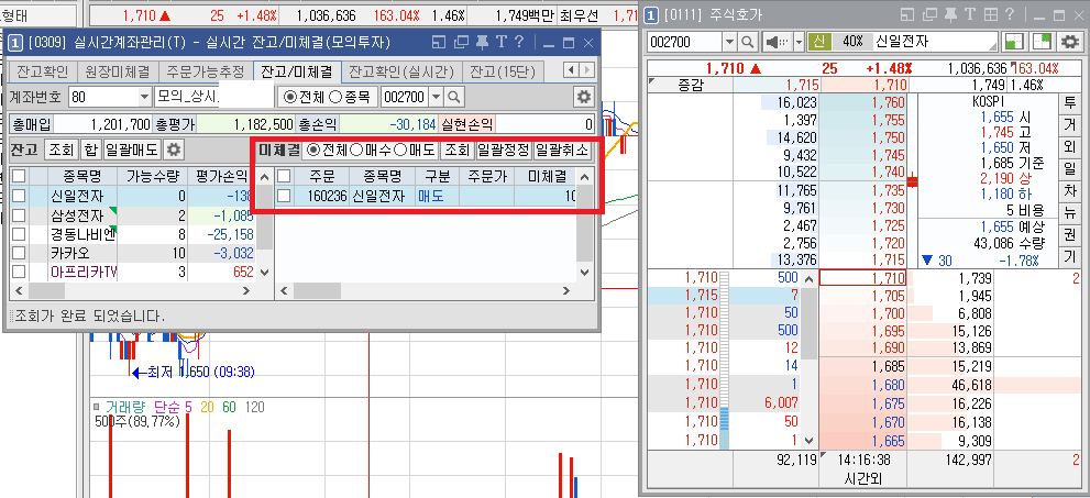 신일전자 10주 매도를 걸었는데. 1주가 먼저 체결되고,