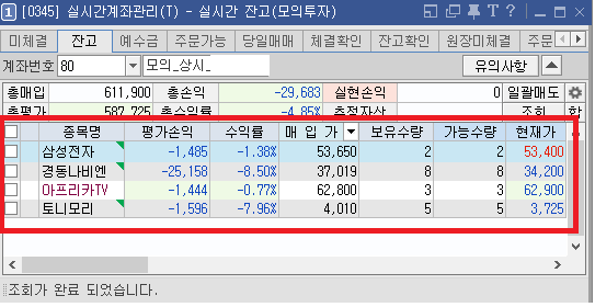 - 계좌번호 10자리(sAccNo) : 사용자의 모의투자 계좌 10자리
