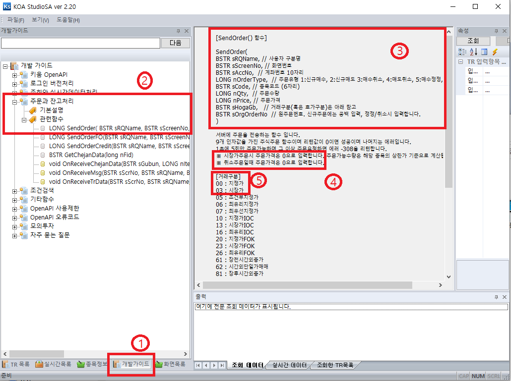 KOA StudioSA에서는 아래와 같이 SendOrder 함수를 설명하고 있다.