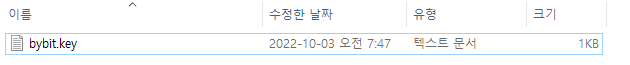 → 이 때 활용하는 것이 bybit.key 파일이다.