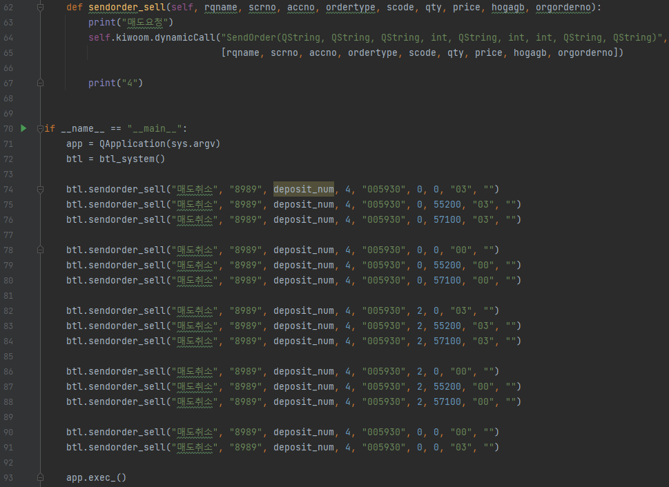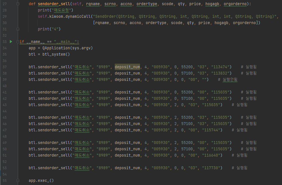 → 이 매도주문의 원주문 번호가 SendOrder 함수의 9번째 인수에 들어가야 한다.