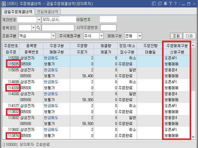 그래도 "취소 주문"이 주문체결내역에서 삭제되었을 때는 정말 기분이 좋았다.