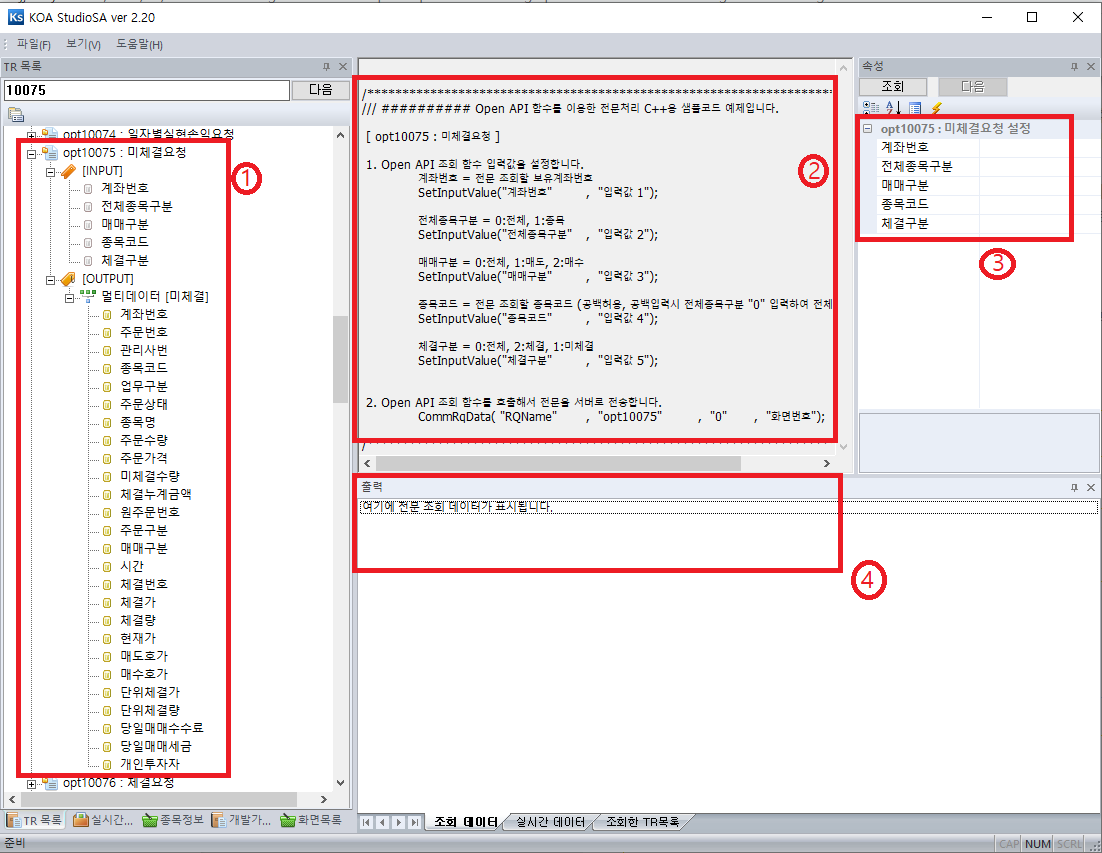 KOA Studio에서 opt10075를 알아보자