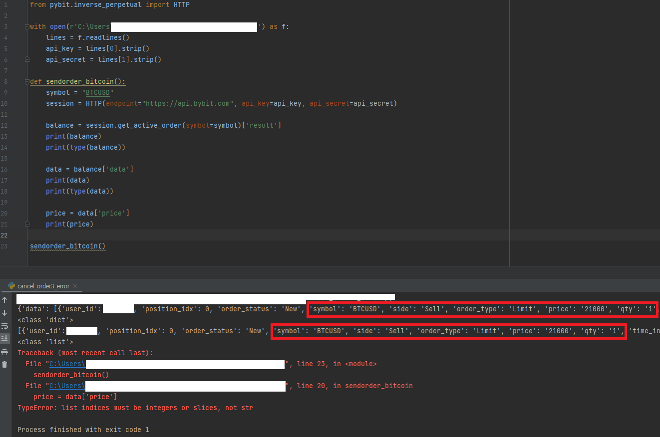 {'data': [{'user_id': 0000000, 'symbol': 'BTCUSD', 'side': 'Sell', 'order_type': 'Limit', 'price': '21000', 'qty': '1 ......} ] }
