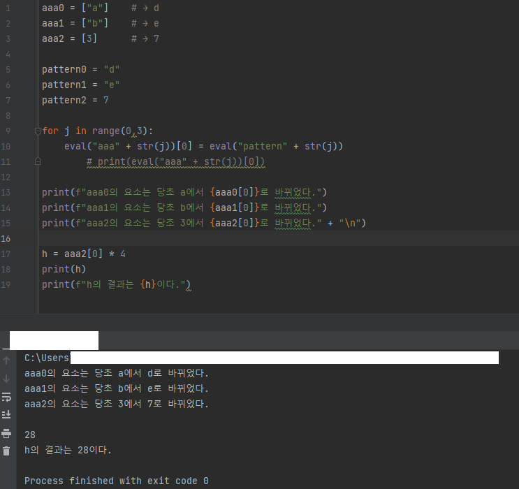 - 결론부터 이야기 하면, 리스트 aaa0는 eval("aaa" + str(0))과 같다는 것이다.