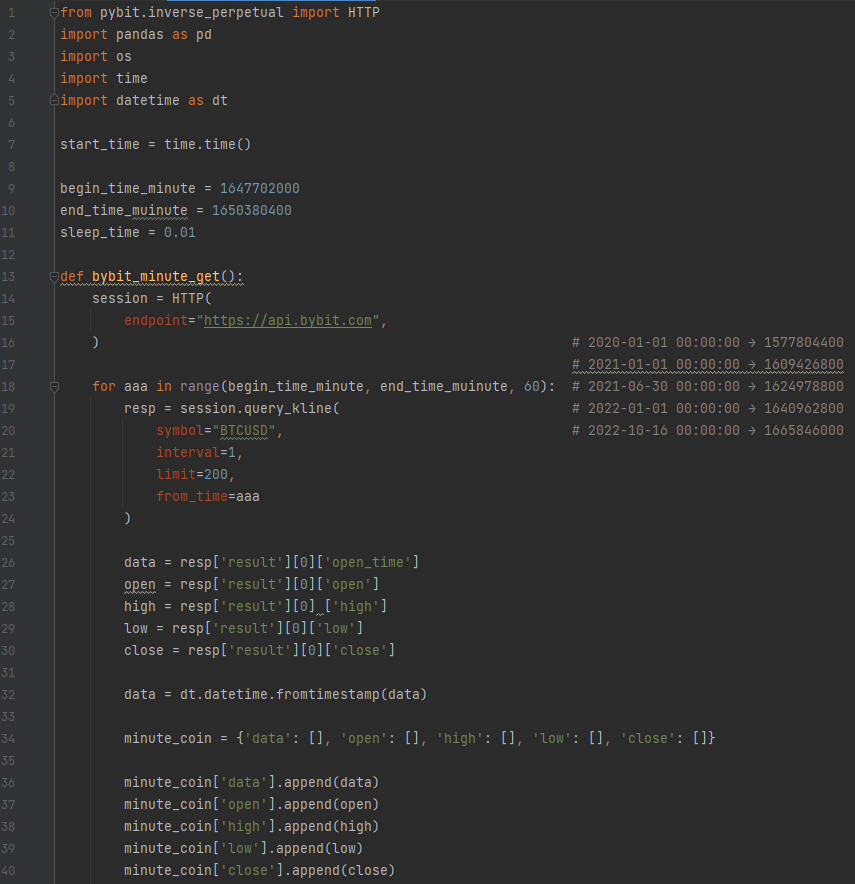 13줄 : bybit_minute_get() 임의의 함수를 선언하였다.