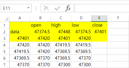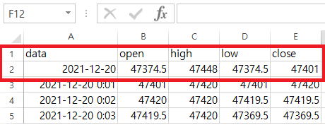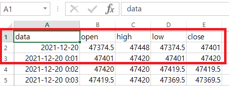 df3 = pd.DataFrame(minute_coin, columns=['data', 'open', 'high', 'low', 'close'])