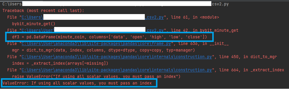 바이비트로 비트코인의 1분봉 과거데이터를 데이터프레임 형태로 만드는 과정에서