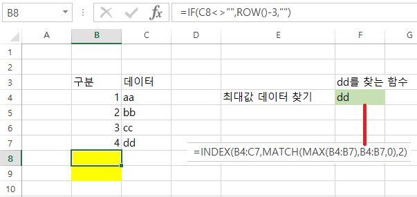 3. ROW, MAX, INDEX-MATCH 함수 조합