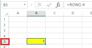 - <그림1-2>에서 확인하였듯이, ROW()를 입력하면 5가 반환되는데, -4를 입력하여 1을 반환받는다.