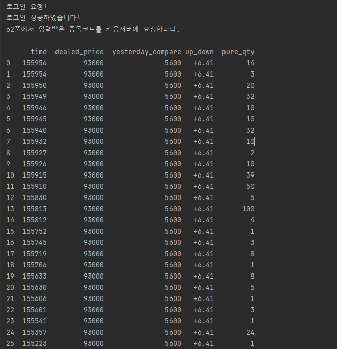 → <그림1>의 체결정보를 데이터프레임 형태로 출력할 것이다.