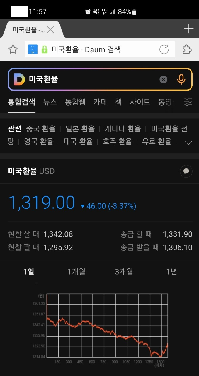 도저히 원달러 환율 정보가 나오지 않는바,